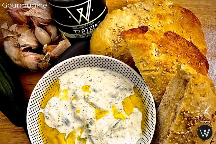 Tzatziki gehört einfach auf den Esstisch eines jeden guten griechischen Abends. Zuviel kann man davon eh nie bekommen, deshalb gleich eine grosse Schüssel mit Naturjoghurt füllen und eine grosszügige Menge Gewürzmischung verrühren. Kalí órexi wie die Griechen sagen.